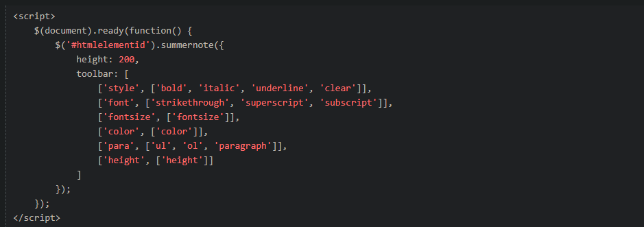 Sau đó kích hoạt phần tử HTML nào trở thành Editor bằng cú pháp mã JavaScript như sau: